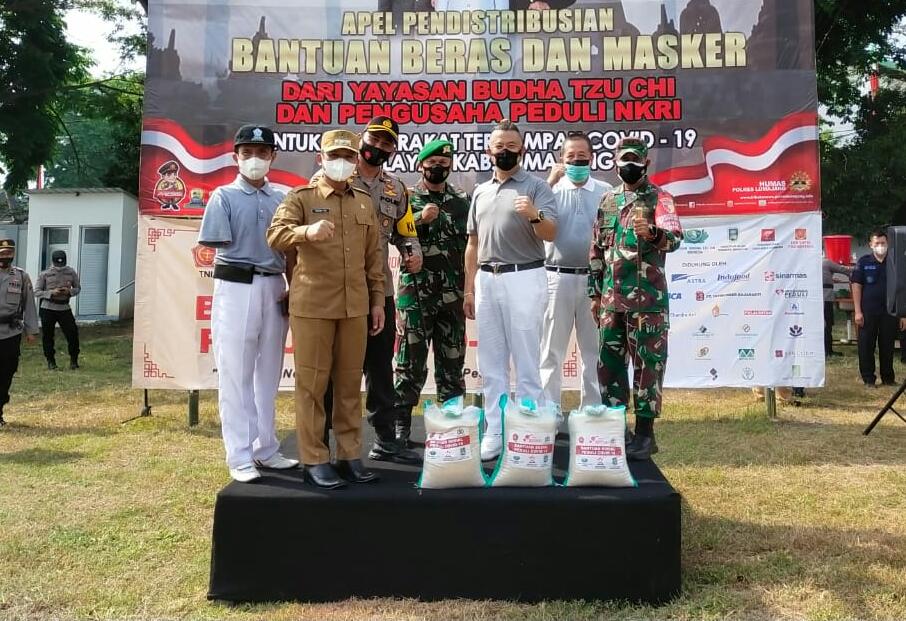 Usai apel, Forkopimda Kabupaten Lumajang dan perwakilan Yayasan Budha Tzu Chi Indonesia dan Pengusaha Peduli NKRI, secara simbolis melepas pendistribusian bantuan tersebut, dilanjut menuju ke Kampung Karyawisma RT 02 & 03 RW 20, Kelurahan Tompokersan, Kecamatan Lumajang. Untuk menyerahkan secara langsung bantuan beras dan masker kepada masyarakat sebanyak 25 orang. (Muh Nurcholis).