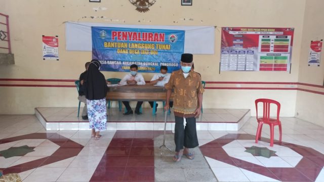 PONOROGO, Cyberkatulistiwa.com – Sebanyak 38 orang penerima manfaat kembali menikmati Bantuan Langsung Tunai (BLT) Dana Desa (DD) Desa Bancar, Kecamatan Bungkal, Kabupaten Ponorogo, Jatim. Penyerahan BLT DD dilaksanakan di Balai Desa Bancar, Rabu (23/6/2021).