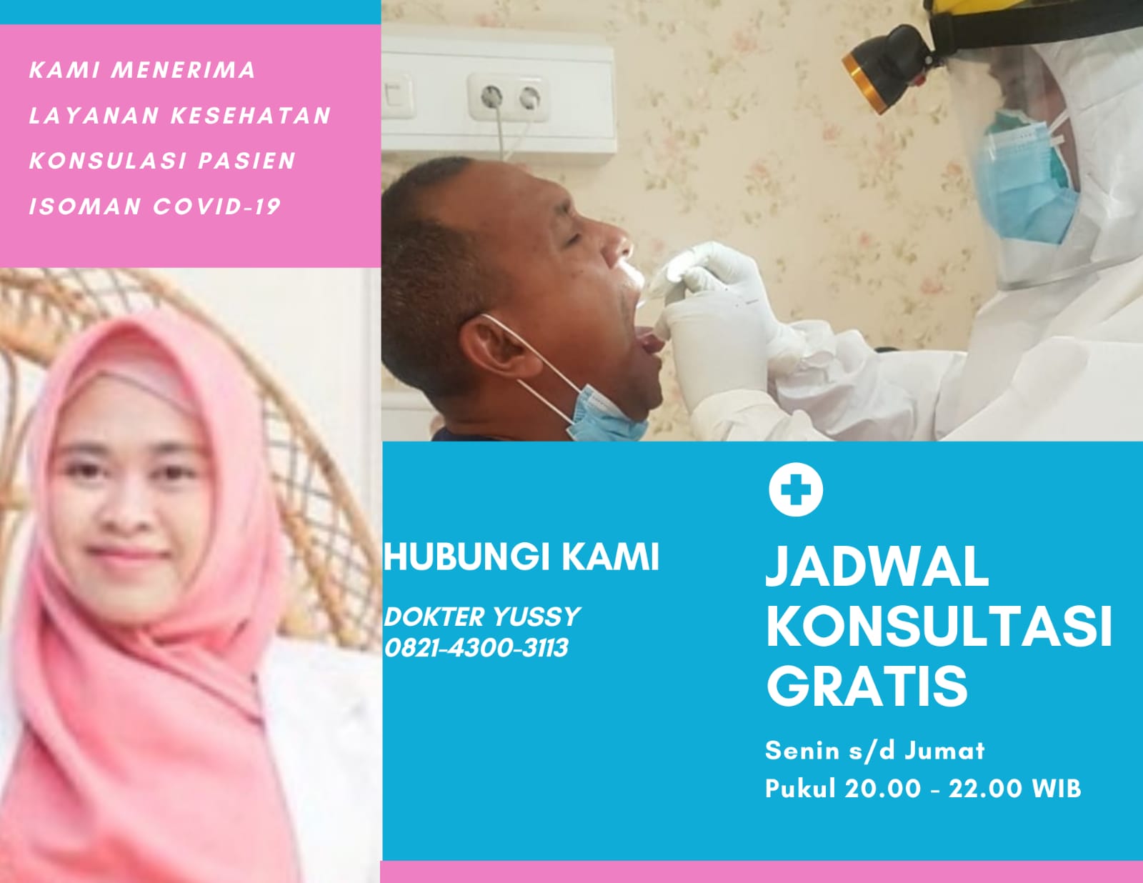 Sehari – hari dokter Yussy melayani masyarakat yang ingin berkonsultasi gratis setiap hari Senin s/d Jumat mulai pukul 20.00 – 22.0 WIB sepulang berjaga dari Klinik.