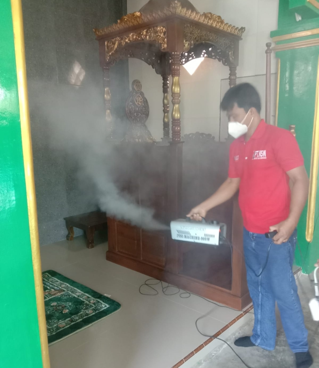 METRO, Cyberkatulistiwa.com – Trader Peduli Indonesia (TPI) Kota Metro bersama Perangkat Kelurahan Yosodadi Kecamatan Metro Timur Kota Metro, bersama – sama melakukan penyemprotan Disinfektan serentak di sejumlah Masjid dan Musholla yang rencananya besok (Selasa, 20/07/2021) akan digunakan Sholat Idul Adha dan Pemotongan Qurban, Senin (19/07/2021).