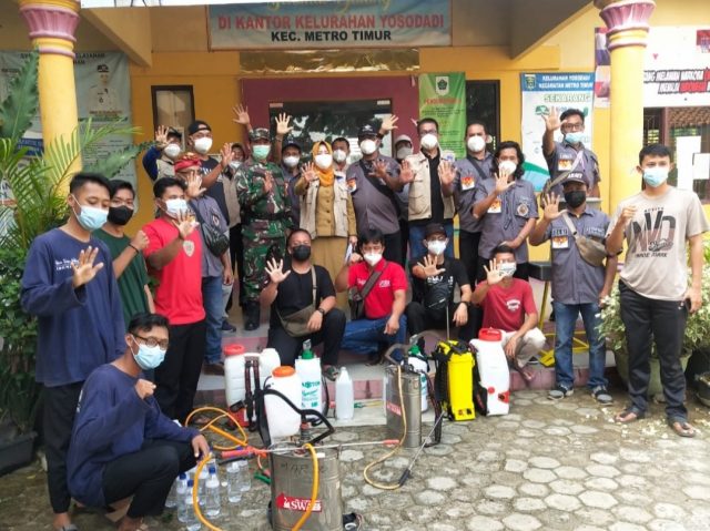 Kegiatan penyemprotan Disinfektan juga diikuti oleh Satgas Kelurahan Yosodadi, KTN maupun Karang Taruna Yosodadi, serta dibantu oleh Puluhan Anggota Trader Peduli Indonesia (TPI) Kota Metro.