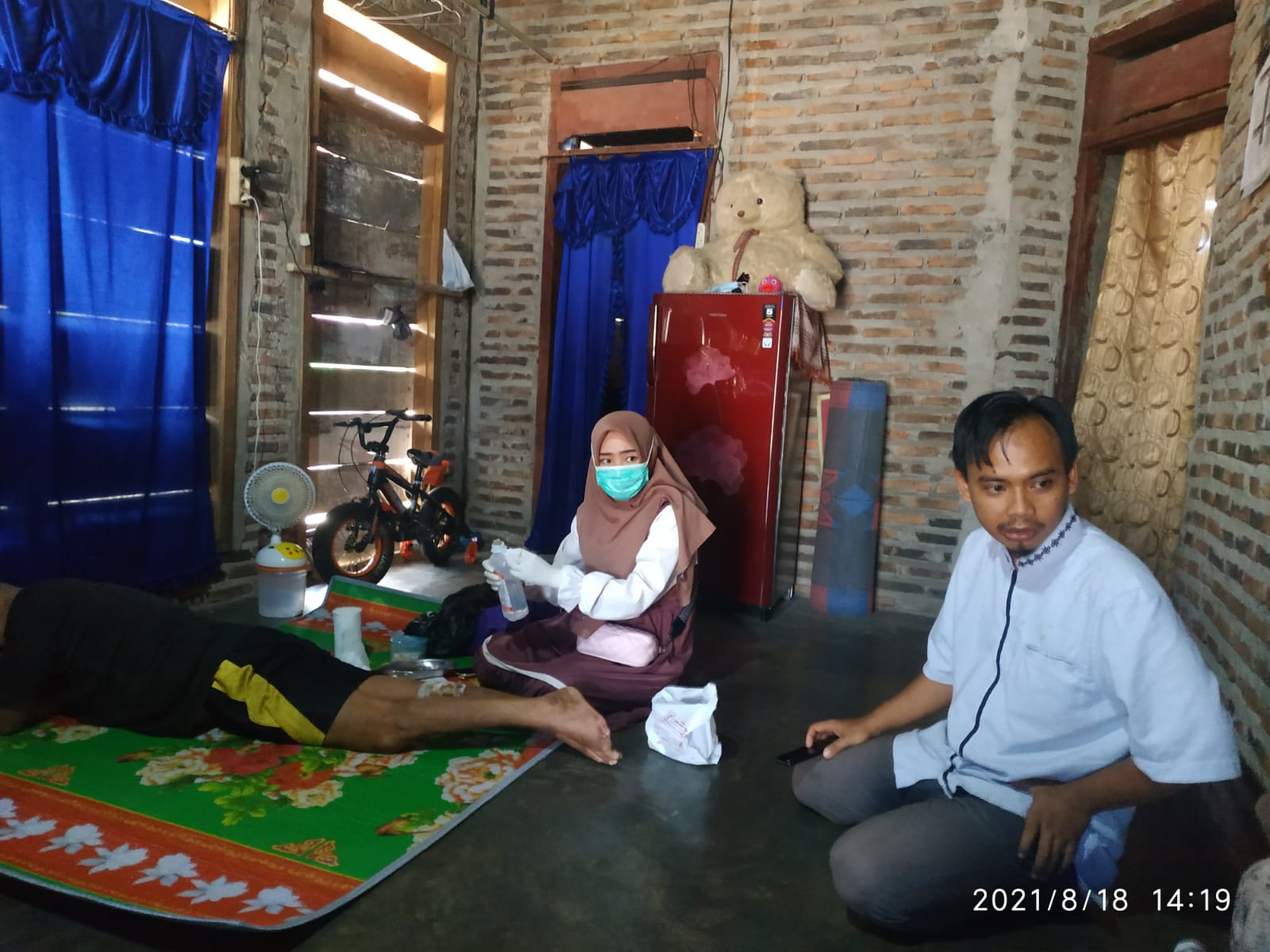 “Mbah jatuh dari masang lampu, saya diberi tau sama salah satu masyarakat. Makanya saya kesini jenguk mbah Roni liat keadaan beliau, ” Terang Khoirul Ilham SPd. (KH). Saat menjenguk mbah, Rabu (18/08/2021).