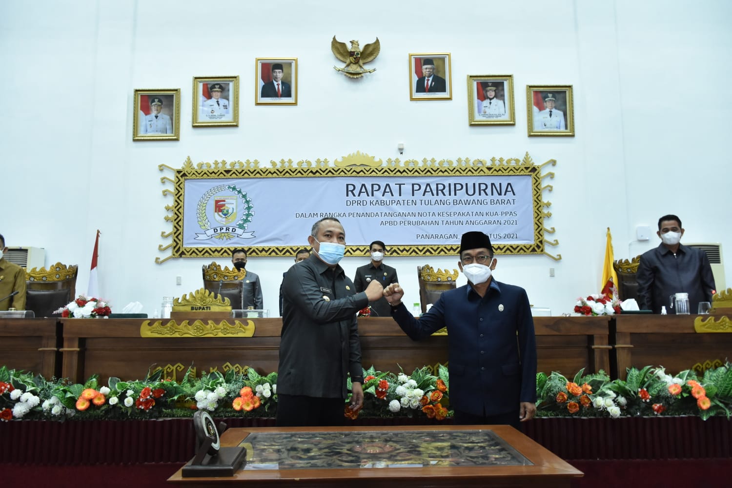 Sesuai dengan kesepakatan bersama, eksekutif dan legislatif bersama-sama saling memberikan dukungan dan kontribusi sesuai dengan kewenangannya, mulai dari proses perencanaan, pelaksanaan, pengendalian, hingga kepada tahapan evaluasi. Dengan ditandatanganinya Nota Kesepakatan Rancangan KUA & PPAS-P APBD tahun Anggaran 2021, maka eksekutif dan legislatif pada hakekatnya mempunyai tanggung jawab yang sama melalui fungsi dan kewenangannya masing-masing untuk membangun Kabupaten Tulang Bawang Barat dalam rangka mencapai keberhasilan pelaksanaan pembangunan pada Tahun Anggaran 2021.