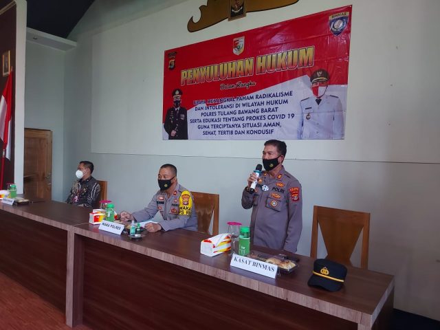 TuBaBa, Cyberkatulistiwa.com – Polres Tulang Bawang Barat melaksanakan kegiatan Penyuluhan Hukum dalam rangka upaya menangkal paham radikalisme dan intoleransi di wilayah Hukum Polres Tulang Bawang Barat serta edukasi tentang proses covid-19 yang dilaksanakan di Aula Griya Tirta Asri, Tiyuh Tirta Makmur pada hari Kamis, 30 September 2021 .
