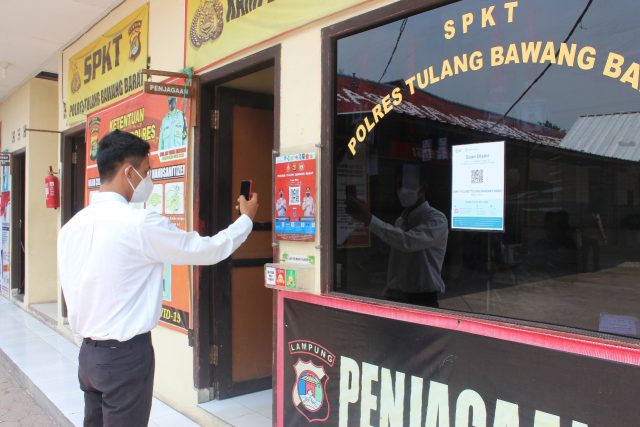 Lanjut IPDA Dian Purnama, Adapun cara untuk penggunaan Aplikasi Peduli Lindungi, untuk merekam barcode yang telah disediakan di Polres maupun Polsek yang ada ada di Kabupaten Tulang Bawang Barat, Senin (04/10/2021).