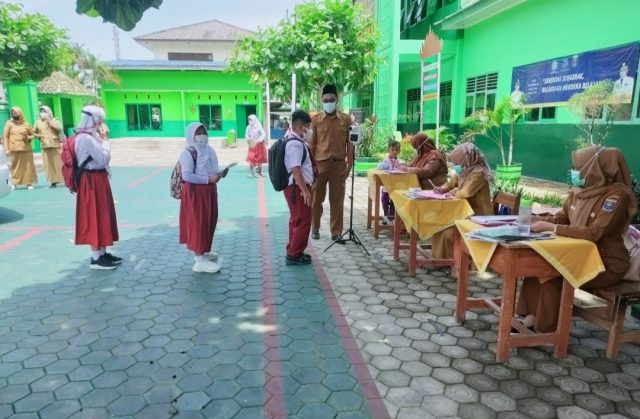 METRO, Cyberkatulistiwa.com – Sekolah Dasar Negeri (SD N) 1 Metro Pusat yang beralamat di Jalan Brigjen Sutiyoso No. 44 Kecamatan Metro Pusat Kota Metro melakukan Kegiatan Belajar Mengajar (KBM) tatap muka dengan melakukan Protokol Kesehatan (Prokes) dengan ketat, Selasa (05/10/2021).