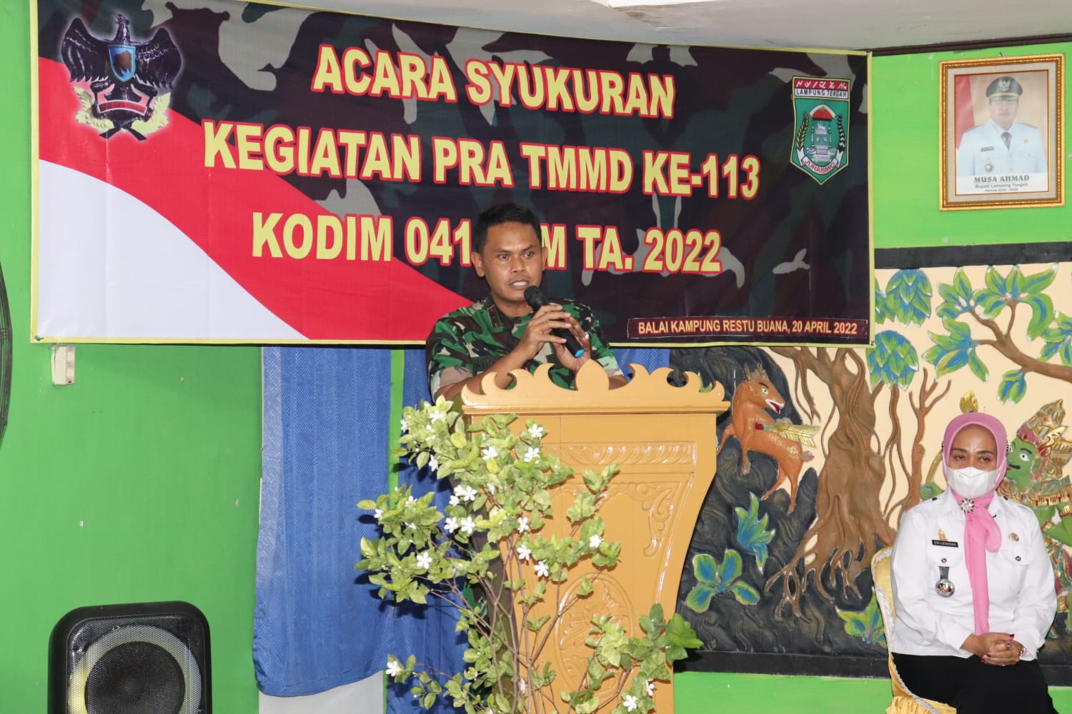 “Direncanakan pelaksanaan Pra TMMD Ke -113 Kodim 0411/KM. TA 2022 akan dilaksanakan selama tujuh hari yakni dari tanggal 20 s.d. 27 April 2022 meliputi Kampung Restu Buana dan Kampung Bina Karya Buana Kecamatan Rumbia Lamteng,” lanjutnya.