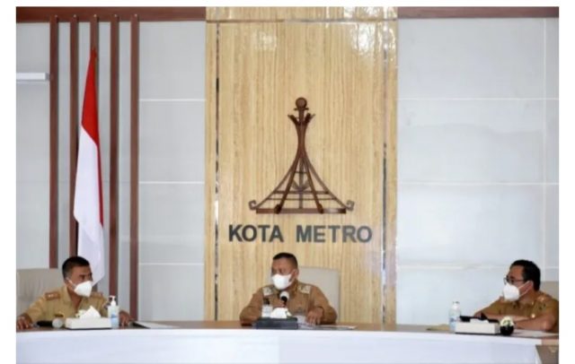 Metro, Cyberkatulistiwa.com – Wakil Wali Kota Metro Qumaru Zaman didampingi Sekda Kota Metro Bangkit Haryo Utomo pimpin rapat Evaluasi Covid-19 secara Zoom Meeting di Guest House Wali Kota, bersama dengan Anggota Fokorpimda, para Asisten, Kadis Kominfo, Kabbag Hukum, Kepala BPBD, Kepala Dinas Kesehatan, Kadis Perhubungan, serta Dewan Kesenian Metro, Selasa (26/04/2022).