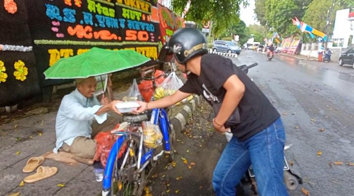 Parno salah seorang pedagang kecil di dipinggiran jalan Wilayah Kota Metro sangat bersyukur atas pemberian paketan nasi yang di berikan pengurus Media www.galaksinewss.com dalam giat Jum’at Berkah Tersebut.
