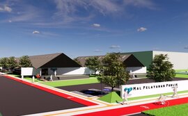 “Strukturnya menggunakan baja berat, finishing beton ekspose, dan atap bangunan memanjang ke belakang dengan ukuran 13 x 30 meter,” ulasnya.