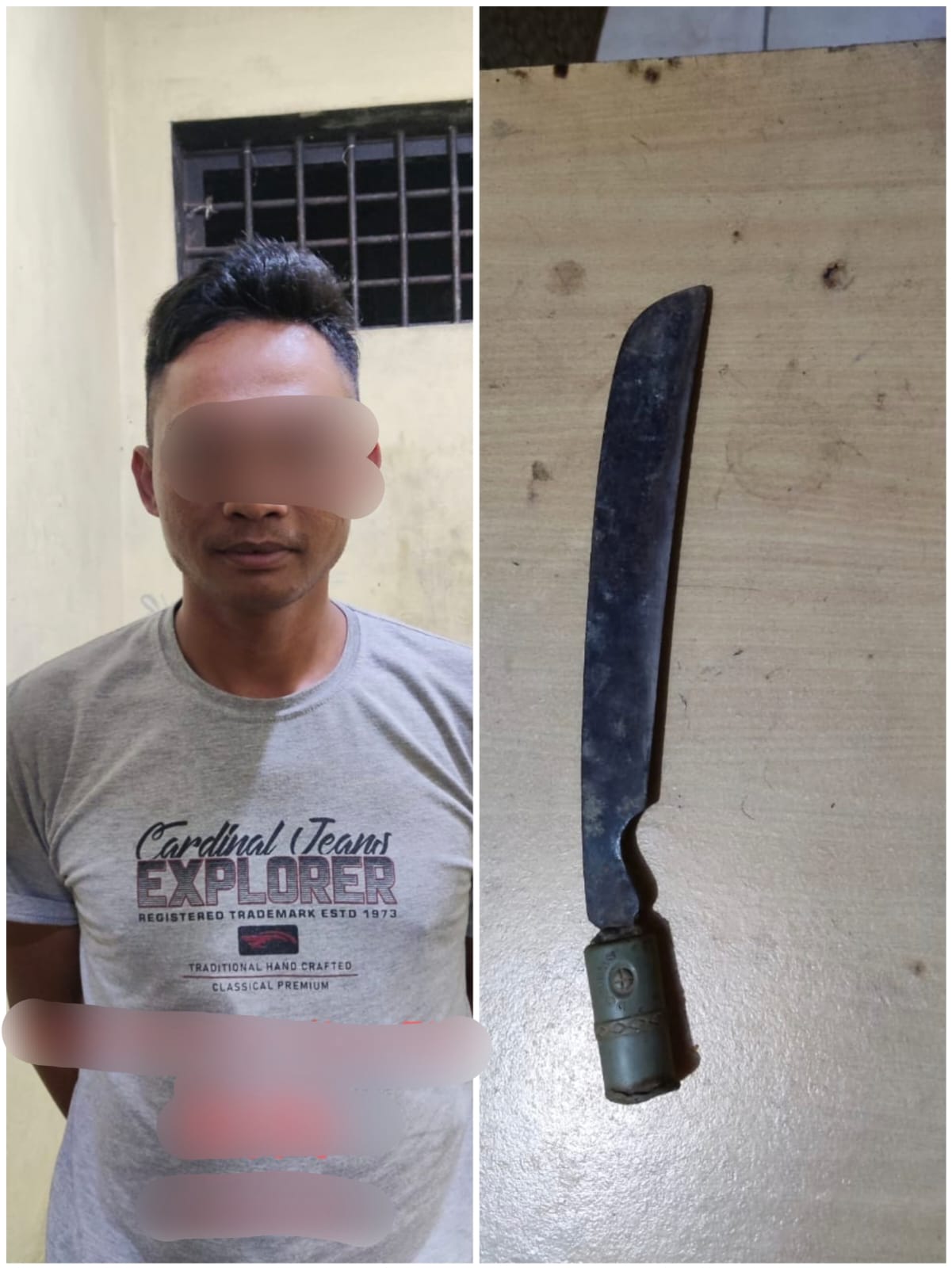 Kejadian berawal pada hari Minggu (08/01/2023) Sekira Jam 21.00 Wib, pada saat korban berada di rumahnya dan tiba-tiba datang pelaku KH langsung memukul pintu rumah korban sambil marah-marah. Dan mengancam dengan membawa golok, akan membunuh Farid yang merupakan anak korban.