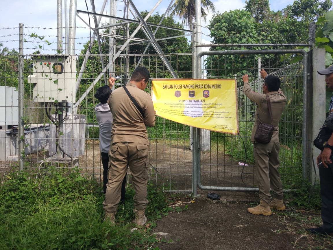 Kota Metro, Cyberkatulistiwa.com – Bidang Penegakan Perda Satuan Polisi Pamong Praja (Sat Pol PP) Kota Metro, bersama Dinas Penanaman Modal Perizinan Terpadu Satu Pintu (DPMPTSP) kembali menyegel Tower milik PT. Gihon Telekomunikasi Indonesia, yang ada di Kecamatan Metro Utara, Selasa (14/03/23). Penyegelan ini dilakukan petugas dikarenakan pihak perusahaan telah melakukan pelanggaran terhadap PASAL 23 AYAT (1) PERATURAN DAERAH KOTA METRO NOMOR 1 TAHUN 2022 TENTANG RETRIBUSI PERSETUJUAN BANGUNAN GEDUNG.