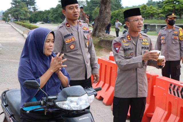 Kapolres Tulang Bawang Barat AKBP Ndaru Istimawan, S.I.K saat membagikan ta’jil menyampaikan kegiatan tersebut merupakan bentuk kepedulian dan rasa ingin berbagi Polres Tulang Bawang Barat dengan pengguna jalan serta masyarakat yang saat ini sedang menjalankan ibadah puasa Ramadan.
