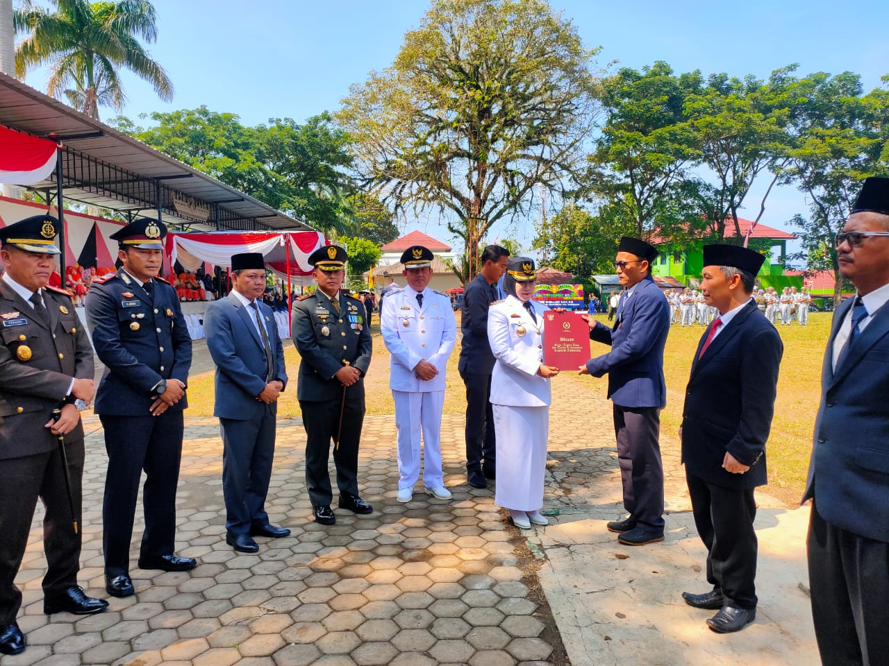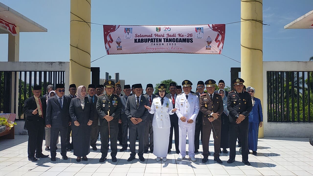 Tanggamus, Cyberkatulistiwa.com ~ Pemkab Tanggamus Bersama Forkopimda Laksanakan Upacara Peringatan HUT Ke 26 Kabupaten Tanggamus dan Ziarah ke Taman Makan Pahlawan dan Dia Bersama Dalam Rangka Peringatan HUT Ke 26, Selasa, 21 Maret 2023, Bertempat di Lapangan Merdeka, Kelurahan Kuripan, Kecamatan Kota Agung, Kabupaten Tanggamus.