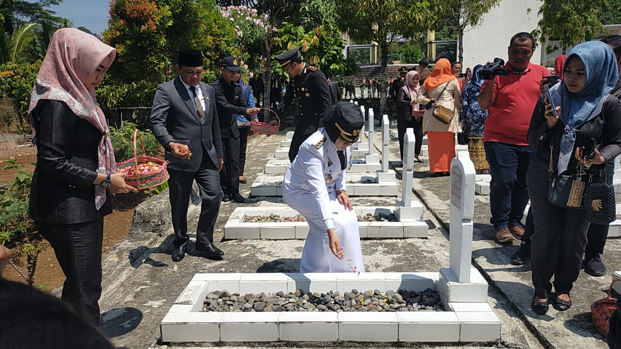 Usai Upacara Peringatan HUT Ke 26 Kabupaten Tanggamus dilanjutkan dengan Ziarah ke Taman Makan Pahlawan Pekon Simpang Kecamatan Kota Agung Timur.