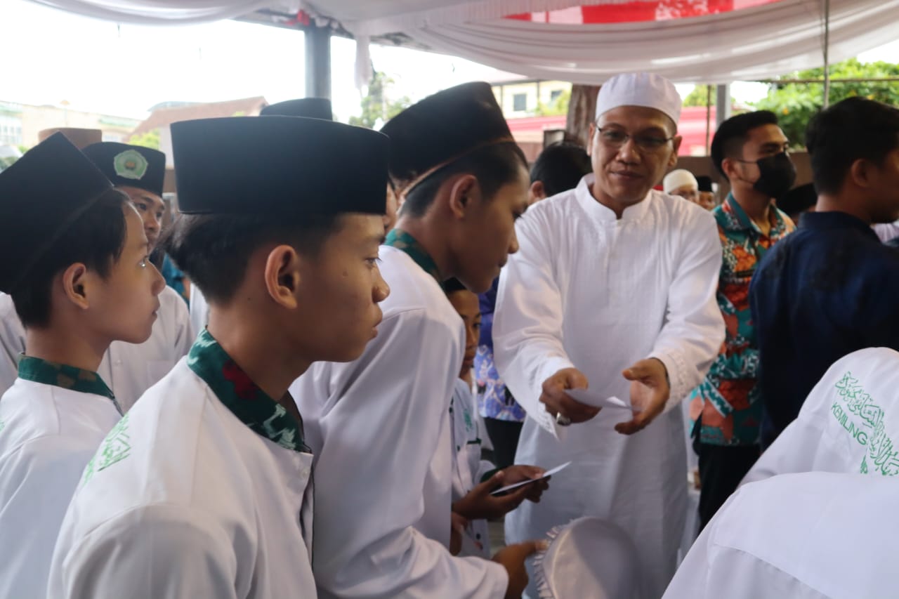 Selain doa bersama, PWI Lampung juga turut memberikan santunan kepada puluhan anak yatim dan warakawuri.