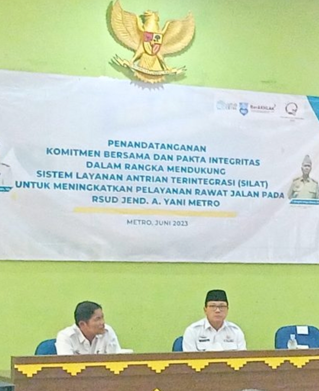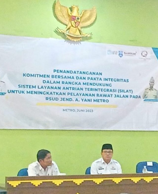 Hal itu disampaikan Direktur RSUDAY Metro, dr. Fitri Agustina usai kegiatan sosialisasi dan penandatanganan fakta integritas dan komitmen bersama untuk mendukung proyek perubahan Sistem Antrian Terintegrasi (Silat) pada UPTD RSUD Ahmad Yani Metro di aula Diklat RSUD setempat, Kamis (22/6/2023).