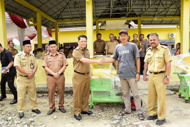 Tubaba, Cyberkatulistiwa.com – Penjabat (Pj) Bupati Tulangbawang Barat (Tubaba) Drs. M Firsada, M.Si. salurkan bantuan mesin chopper (pencacah makanan ternak) bagi para petani dan peternak yang ada di Wilayah Kecamatan Way Kenanga dan Kecamatan Gunung Agung melalui kelompok yang telah dibentuk.
