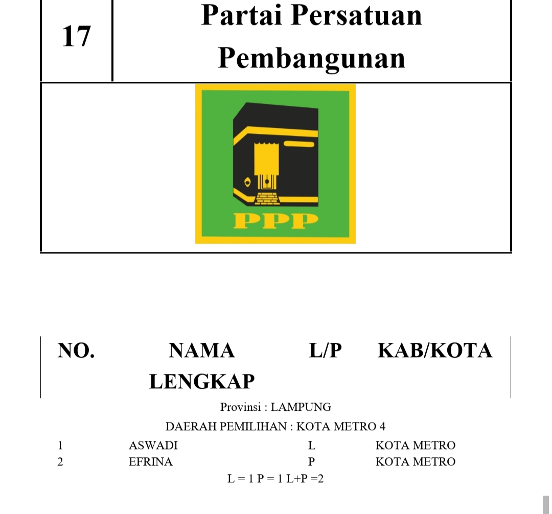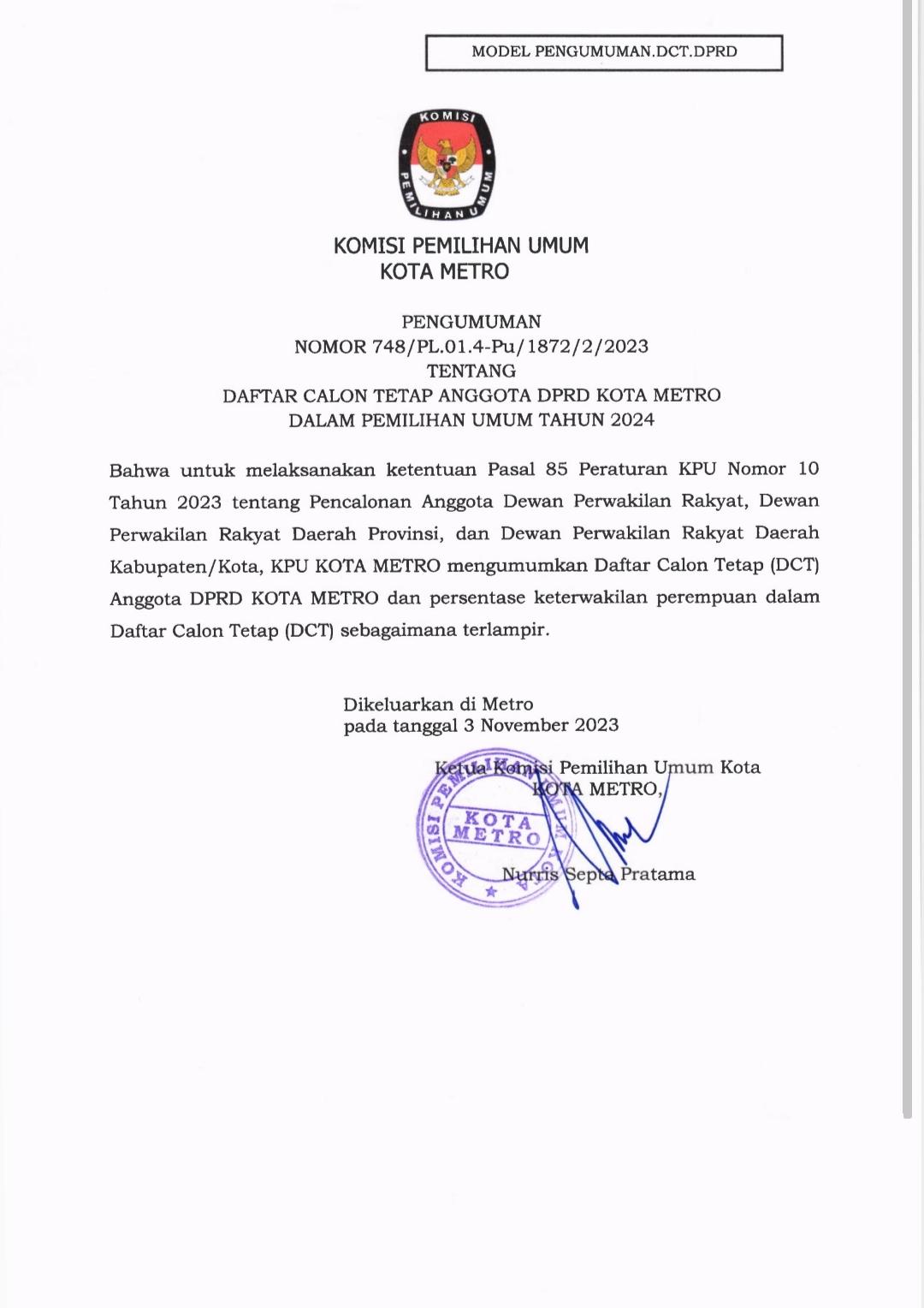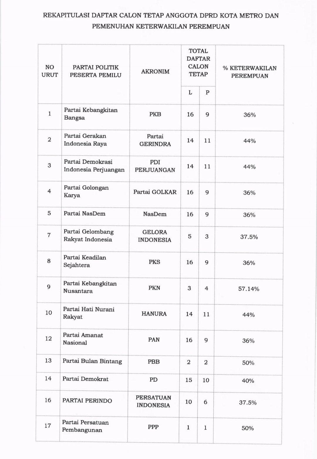 Beranda Berita Daftar Calon Tetap Anggota DPRD Kota Metro Tahun 2024