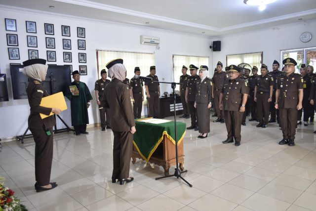 Metro, Cyberkatulistiwa.com – Kepala Kejaksaan Negeri (Kajari) Metro, Nurvita Kusumawardani memimpin pelantikan dan serah terima jabatan (Sertijab) Eselon IV di Aula Adyaksa Kota setempat, Rabu, 8 November 2023.