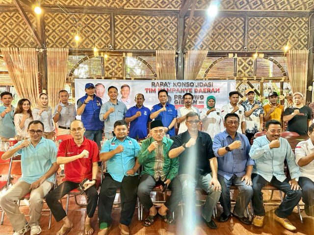 Rapat konsolidasi TKD Prabowo – Gibran turut dihadiri oleh seluruh perwakilan partai koalisi, diantaranya; PAN, Demokrat, PBB, Gelora, Garuda, Prima dan PSI. (*).