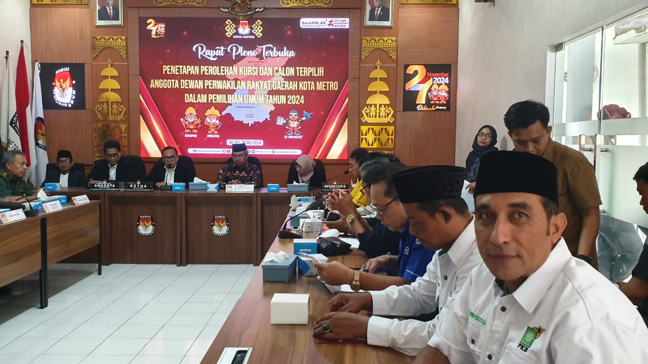 “Dengan sesuai hasil hitungan kami menggunakan metode sunlight ditetapkan 25 anggota DPRD Kota Metro terpilih di tahun 2024,”paparnya.