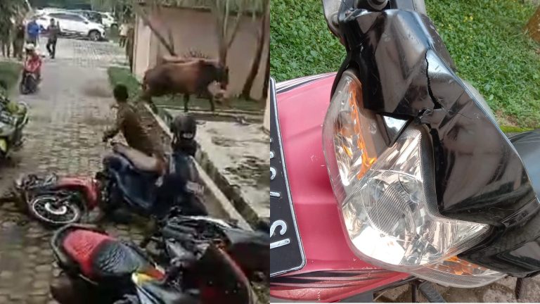 Diketahui jumlah hewan kurban yang di sembelih sebanyak 8 Ekor sapi, dari 8 ekor sapi tersebut salah satu nya enggan di sembelih, pasalnya akan hendak di sembelih sapi kurban tersebut lepas dari tali ikatan, sehingga menyeruduk beberapa kendaraan sepeda motor yang terparkir di halaman kantor Pemda setempat.