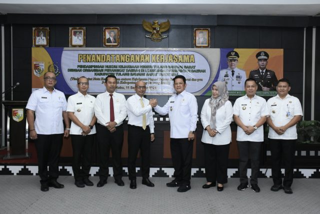 Tubaba, Cyberkatulistiwa.com – Para Kepala Organisasi Perangkat Daerah (OPD) Pemerintah Kabupaten Tulang Bawang Barat (Tubaba) menandatangani Rencana Kerja dengan Kejaksaan Negeri setempat.
