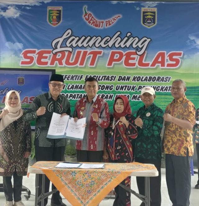 Metro, Cyberkatulistiwa.com – Sekretaris Daerah Kota Metro, Ir. Bangkit Haryo Utomo hadiri acara Penandatanganan Perjanjian kerja sama sekaligus Launching Strategi Efektif Fasilitasi dan Kolaborasi Pemanfaatan Lahan Kosong (Seruit Pelas) di Landbouw Kecamatan Metro Pusat Kota Metro, Jum’at (11/10/2024).