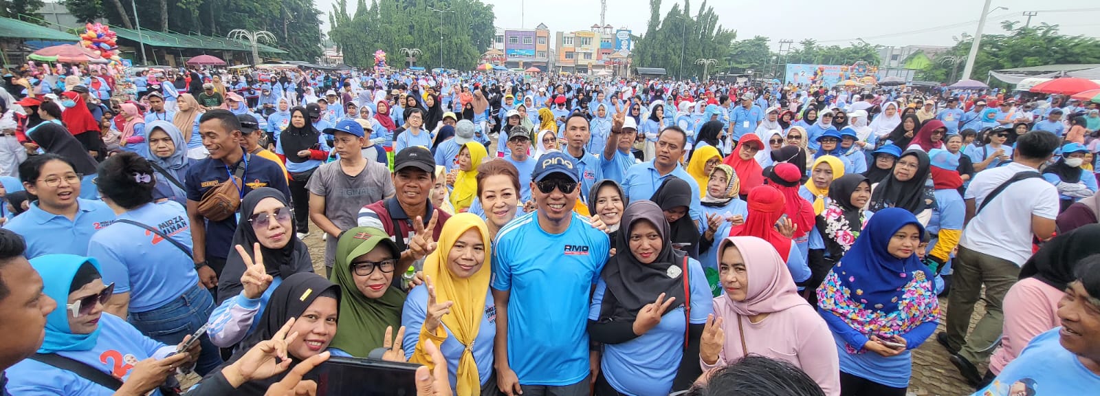 METRO, Cyberkatulistiwa.com – Ribuan warga Kota Metro memadati Lapangan Samber Park sejak pagi untuk mengikuti kegiatan Senam Sehat Berhadiah bersama calon Gubernur Lampung, Rahmat Mirzani Djausal, Minggu (17/11/2024). Kegiatan ini berlangsung meriah, penuh semangat, dan menggambarkan antusiasme masyarakat terhadap calon pemimpin yang mereka dambakan.