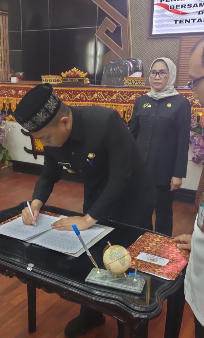 Acara Selanjutnya dilanjutkan dengan Penanda Tangan Nota Kesepakatan KUA – PPAS APBD Tahun 2025 yang ditanda tangani oleh Ketua DPRD Kota Metro Ria Hartini, Wakil Ketua Ahmad Khusaini, Wakil Ketua Abdulhak dan Pjs Walikota Metro Descatama Paksi Moeda, Serta Penyerahan Nota Kesepakatan dan Foto bersama.(ADV).