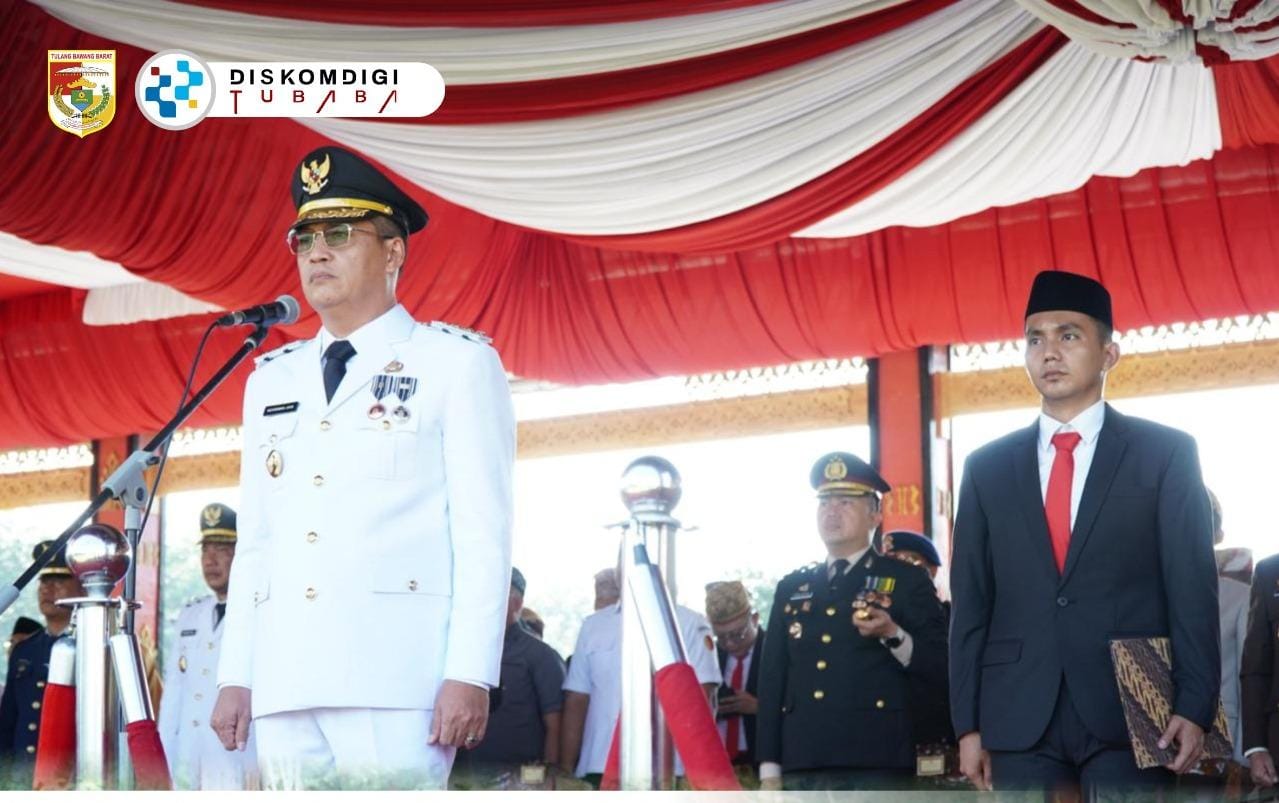 Tubaba, Cyberkatulistiwa. Com – Bupati Tulang Bawang Barat (Tubaba) Ir. Novriwan Jaya, S.P., memimpin upacara peringatan HUT ke 16 Tubaba yang dilaksanakan di Halaman Kantor Pemda setempat pada Rabu (09/04/2025).