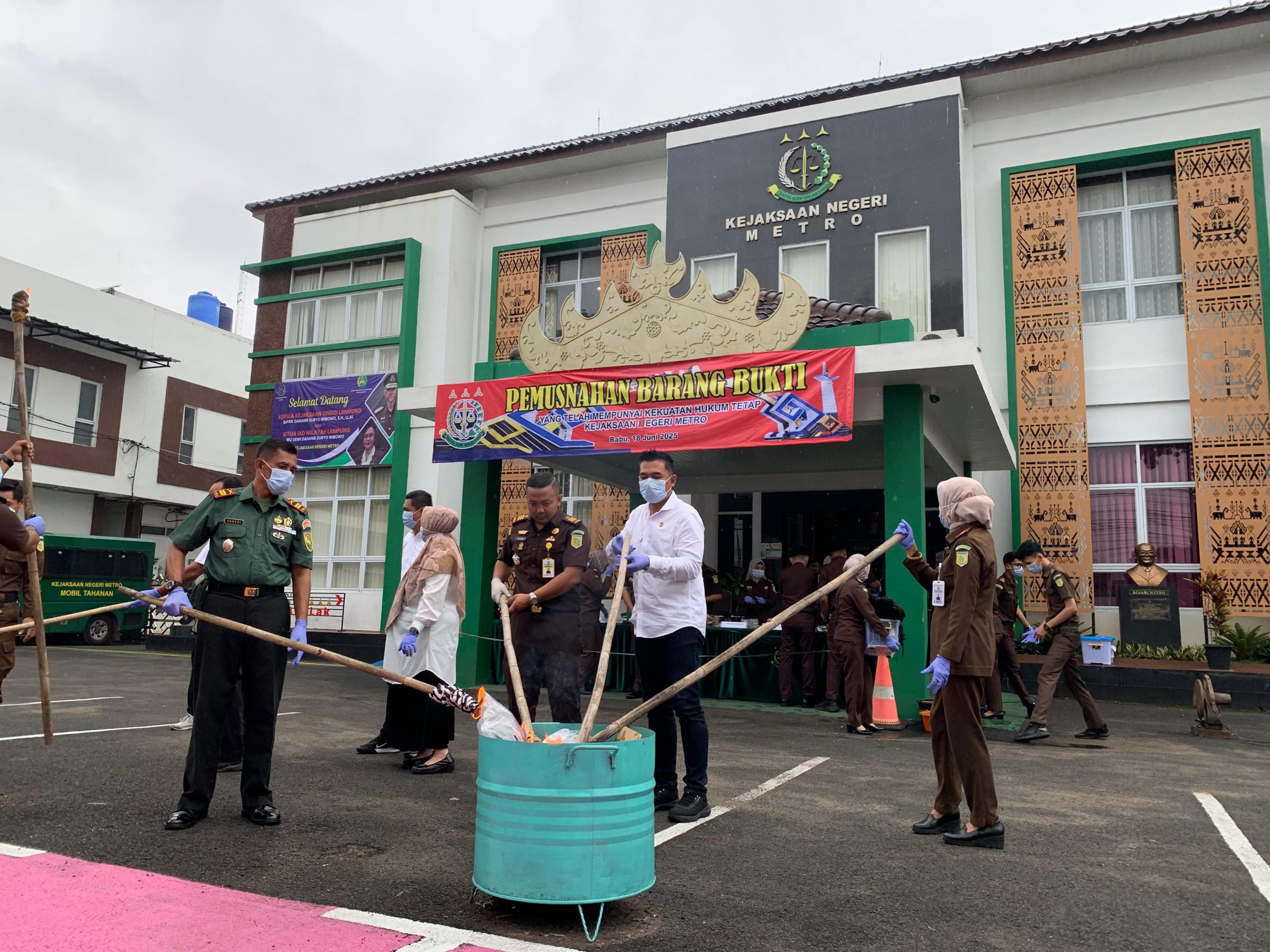 Metro, Cyberkatulistiwa.com – Kejaksaan Negeri Metro memusnahkan barang bukti 78 perkara berkekuatan hukum tetap di halaman Kantor Kejari setempat, Rabu, 18 Juni 2025. Pemusnahan ini disaksikan Badan Narkotika Nasional, Kepolisian, TNI dan Dinas kesehatan Kota Metro.