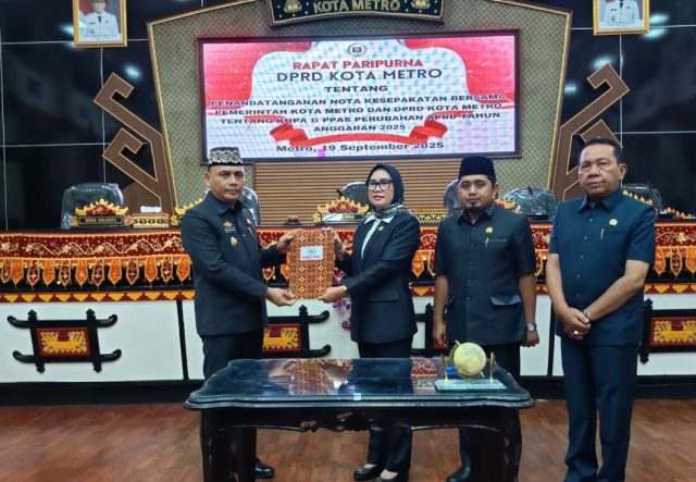 Metro, Cyberkatulistiwa.com — DPRD Kota Metro menggelar Rapat Paripurna Penandatangan Nota Kesepakatan tentang KUA-PPAS Perubahan APBD Tahun Anggaran 2025. Dalam Rapat Paripurna diketahui, pada Perubahan APBD Kota Metro 2025 mengalami defisit sebesar Rp 14 miliar lebih. Senin (22/09/2025).
