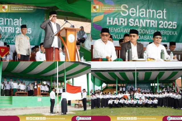 Tubaba, Cyberkatulistiws.com – Bupati Tulang Bawang Barat (Tubaba), Ir. Novriwan Jaya, S.P., bersama Wakil Bupati Nadirsyah, menghadiri Upacara Peringatan Hari Santri Nasional Tahun 2025 di Lapangan Tiyuh/Desa Makarti, Kecamatan Tumijajar, pada Rabu (22/10/2025).
